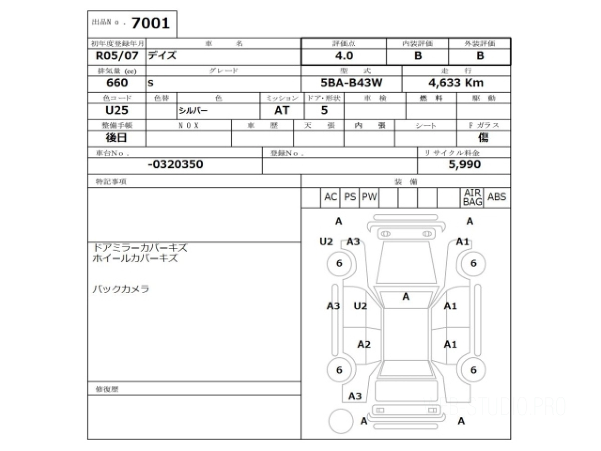 Оценка аукциона: 4, что гарантирует хорошее техническое и косметическое состояние кузова и салона.