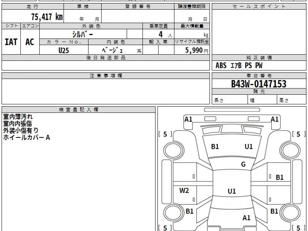 Номер кузова: B43W.