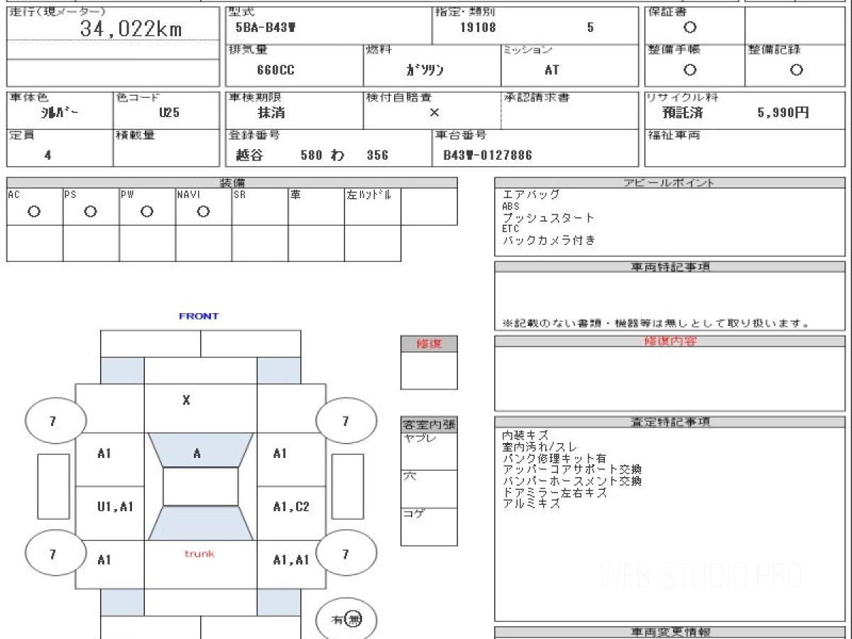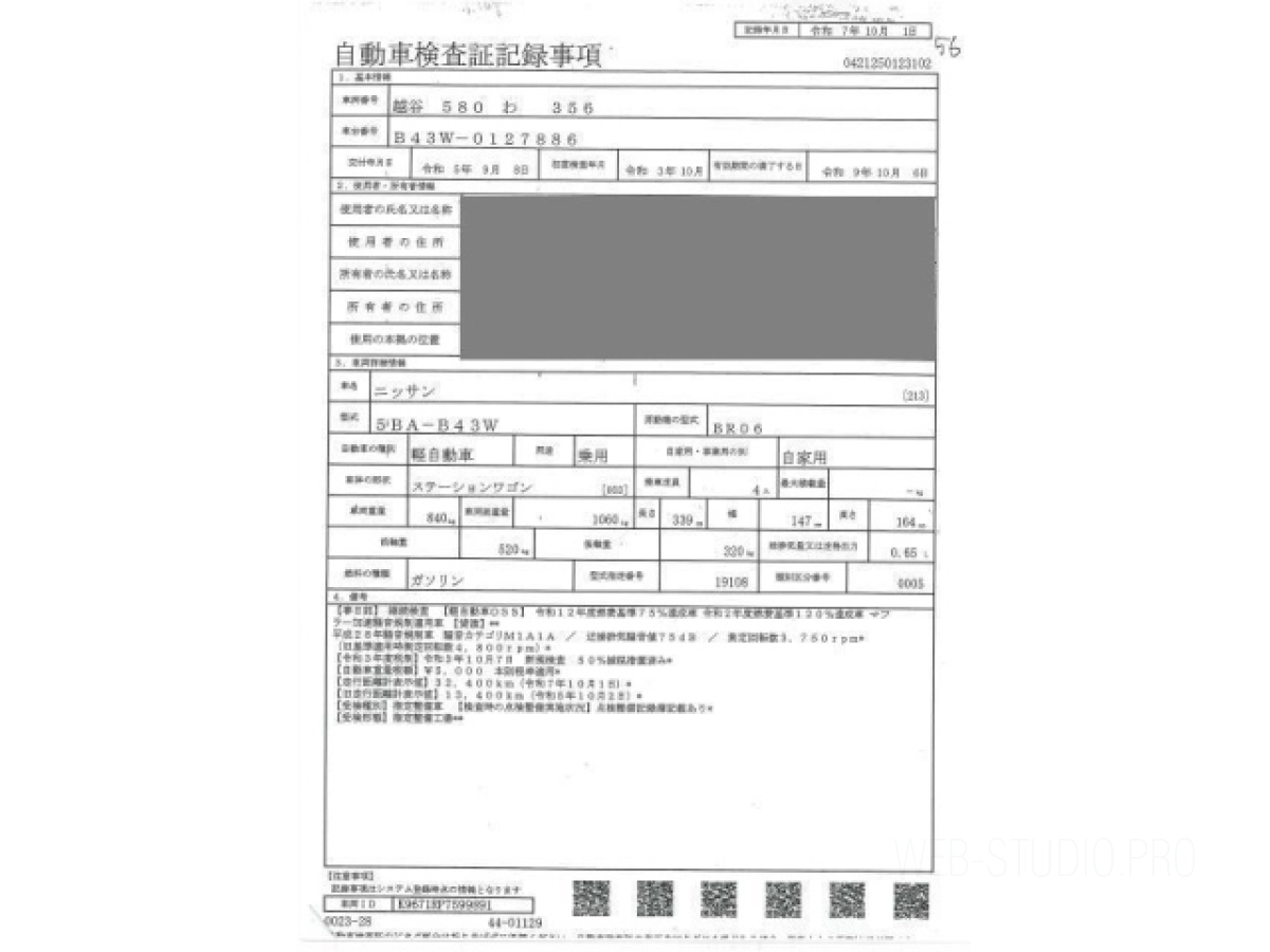 Номер кузова: B43W.
