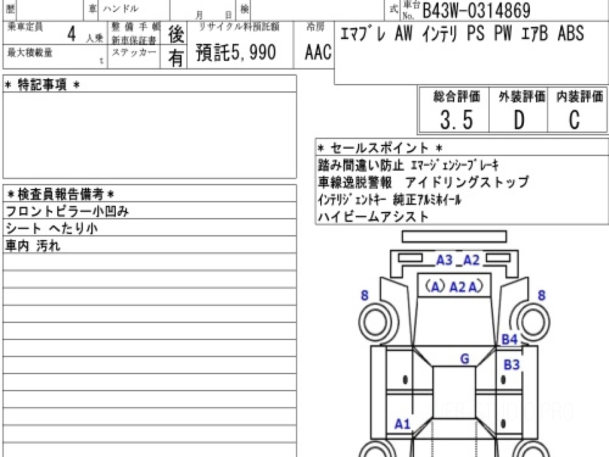 Оценка аукциона: 3.5, что гарантирует хорошее техническое и косметическое состояние кузова и салона.