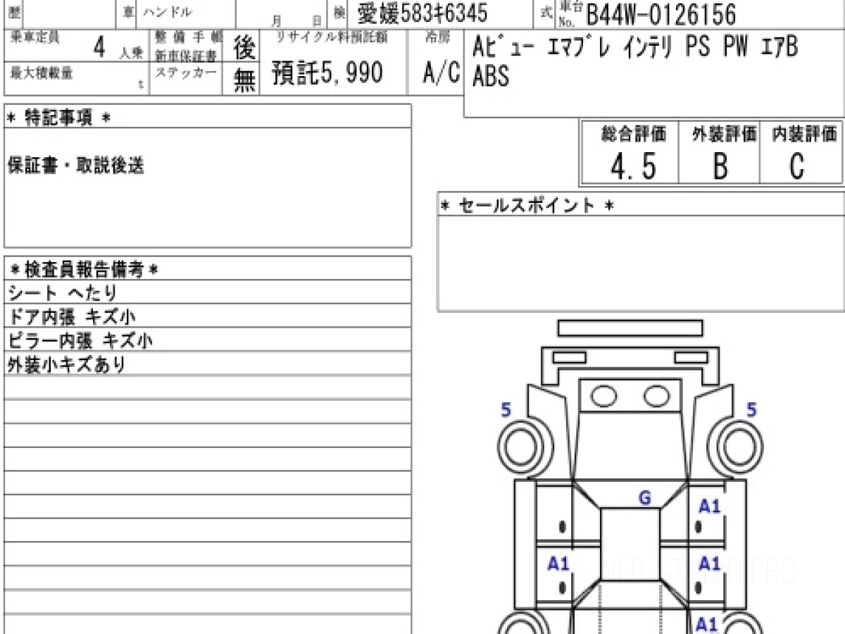 Оценка аукциона: 4.5, что гарантирует хорошее техническое и косметическое состояние кузова и салона.