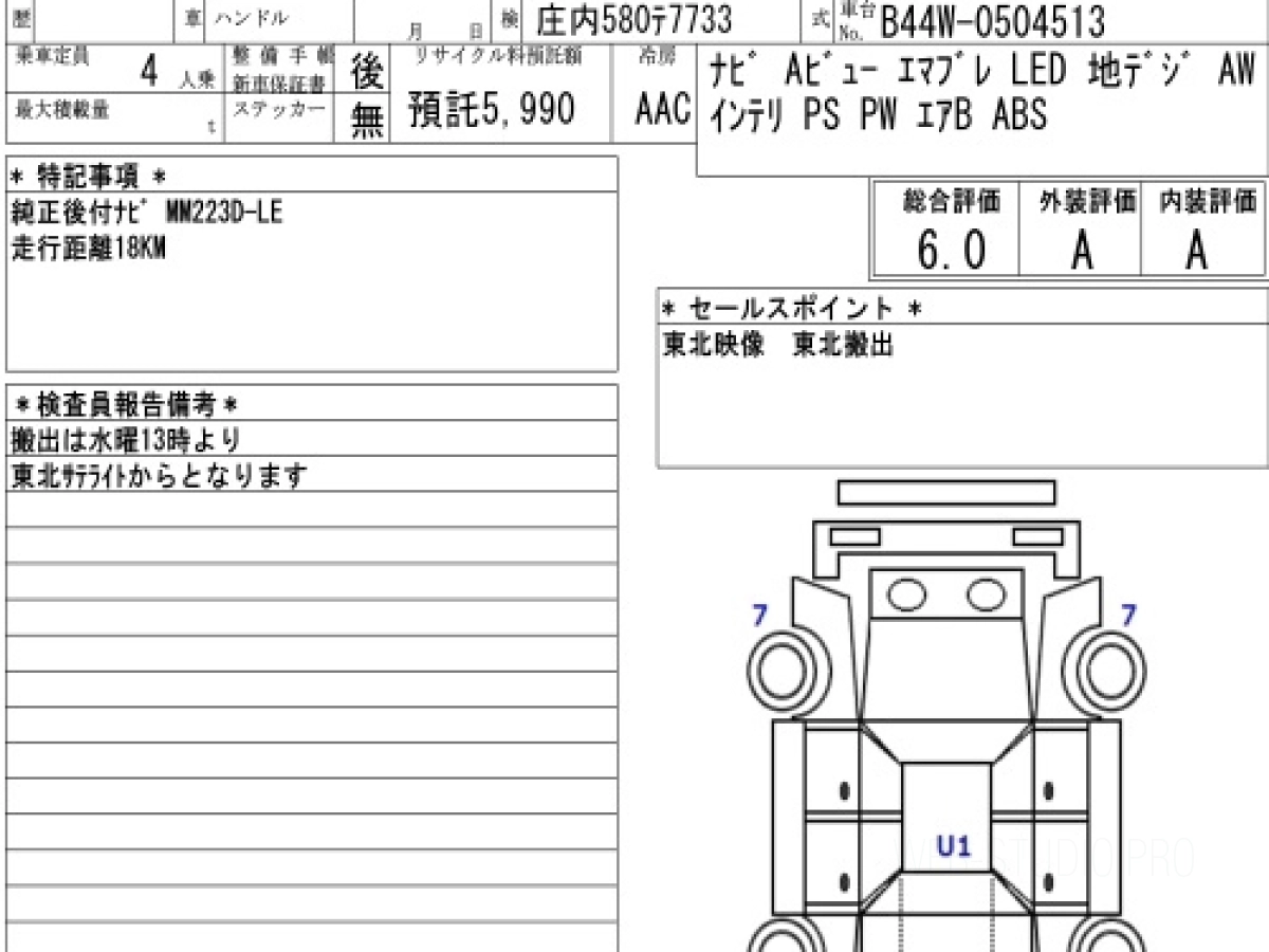 Оценка аукциона: 6, что гарантирует хорошее техническое и косметическое состояние кузова и салона.