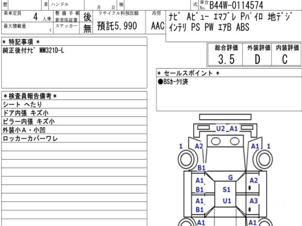 Оценка аукциона: 3.5, что гарантирует хорошее техническое и косметическое состояние кузова и салона.