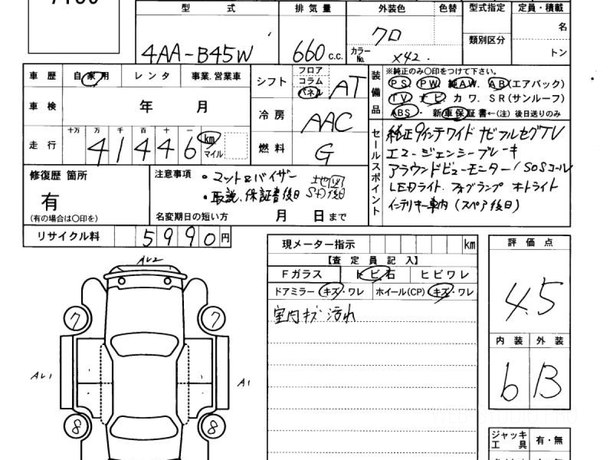 Оценка аукциона: 4.5, что гарантирует хорошее техническое и косметическое состояние кузова и салона.