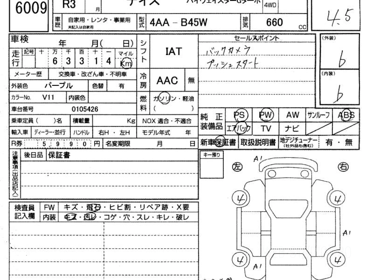 Оценка аукциона: 4.5, что гарантирует хорошее техническое и косметическое состояние кузова и салона.