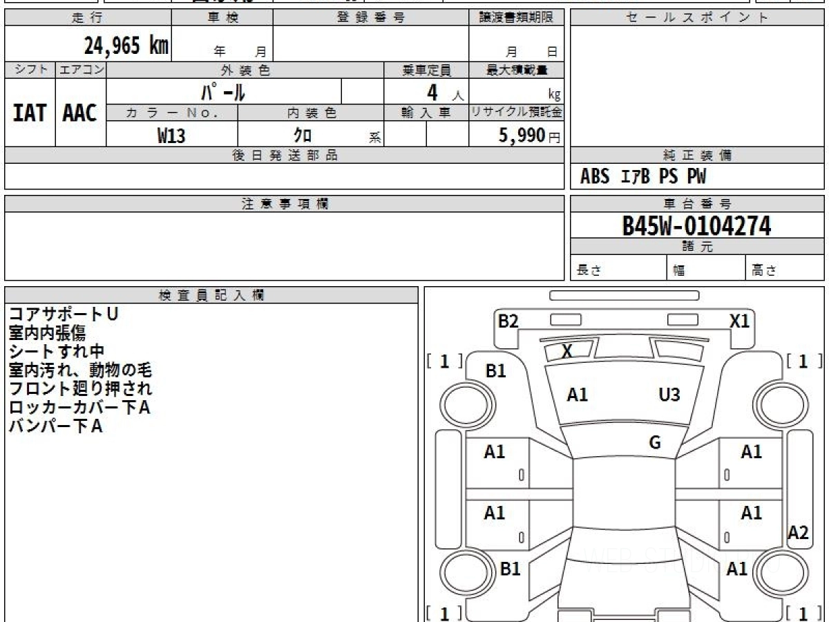 Номер кузова: B45W.
