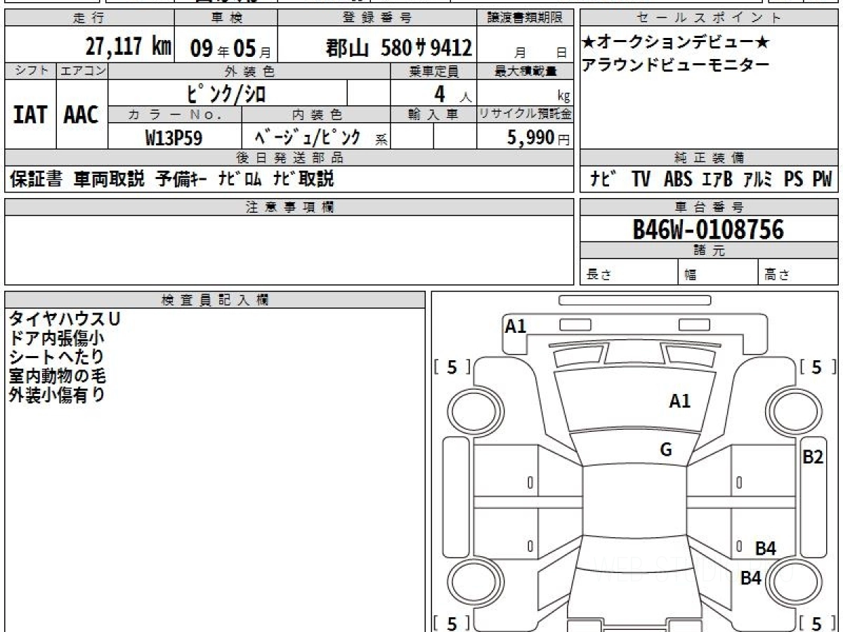 Оценка аукциона: 3.5, что гарантирует хорошее техническое и косметическое состояние кузова и салона.