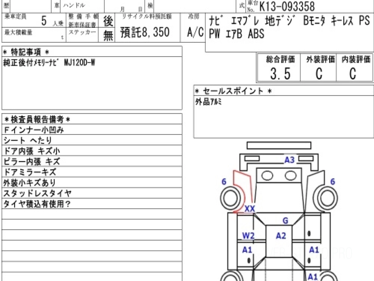 Оценка аукциона: 3.5, что гарантирует хорошее техническое и косметическое состояние кузова и салона.