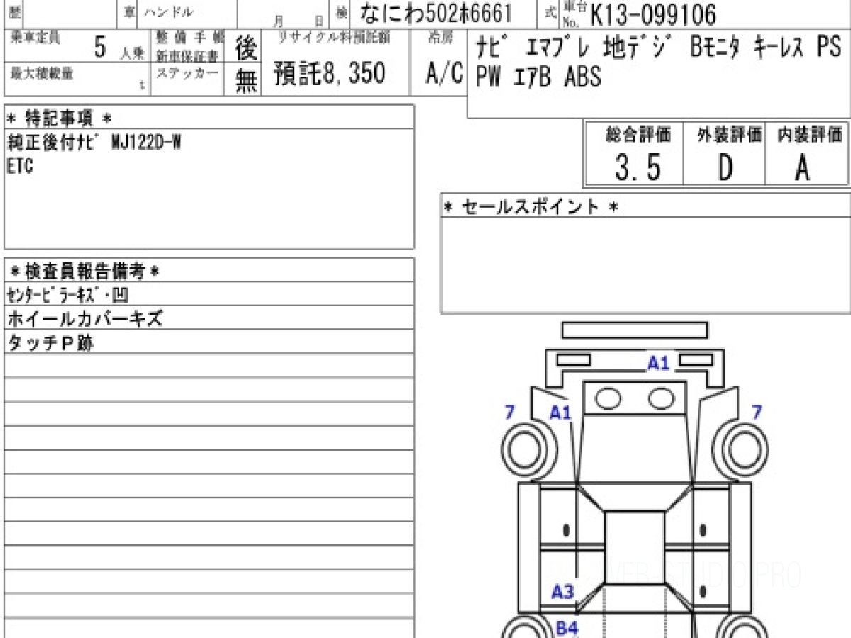 Оценка аукциона: 3.5, что гарантирует хорошее техническое и косметическое состояние кузова и салона.