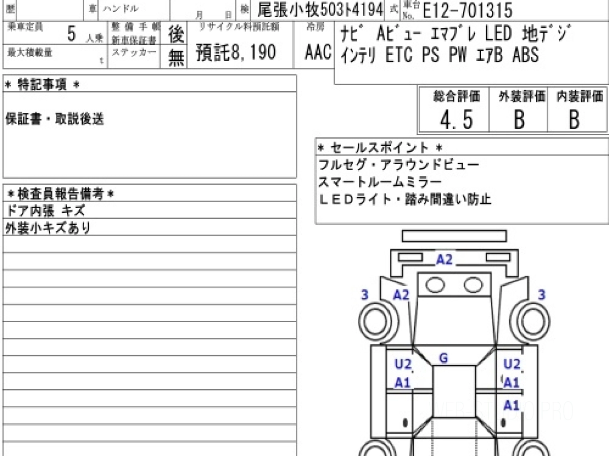 Оценка аукциона: 4.5, что гарантирует хорошее техническое и косметическое состояние кузова и салона.