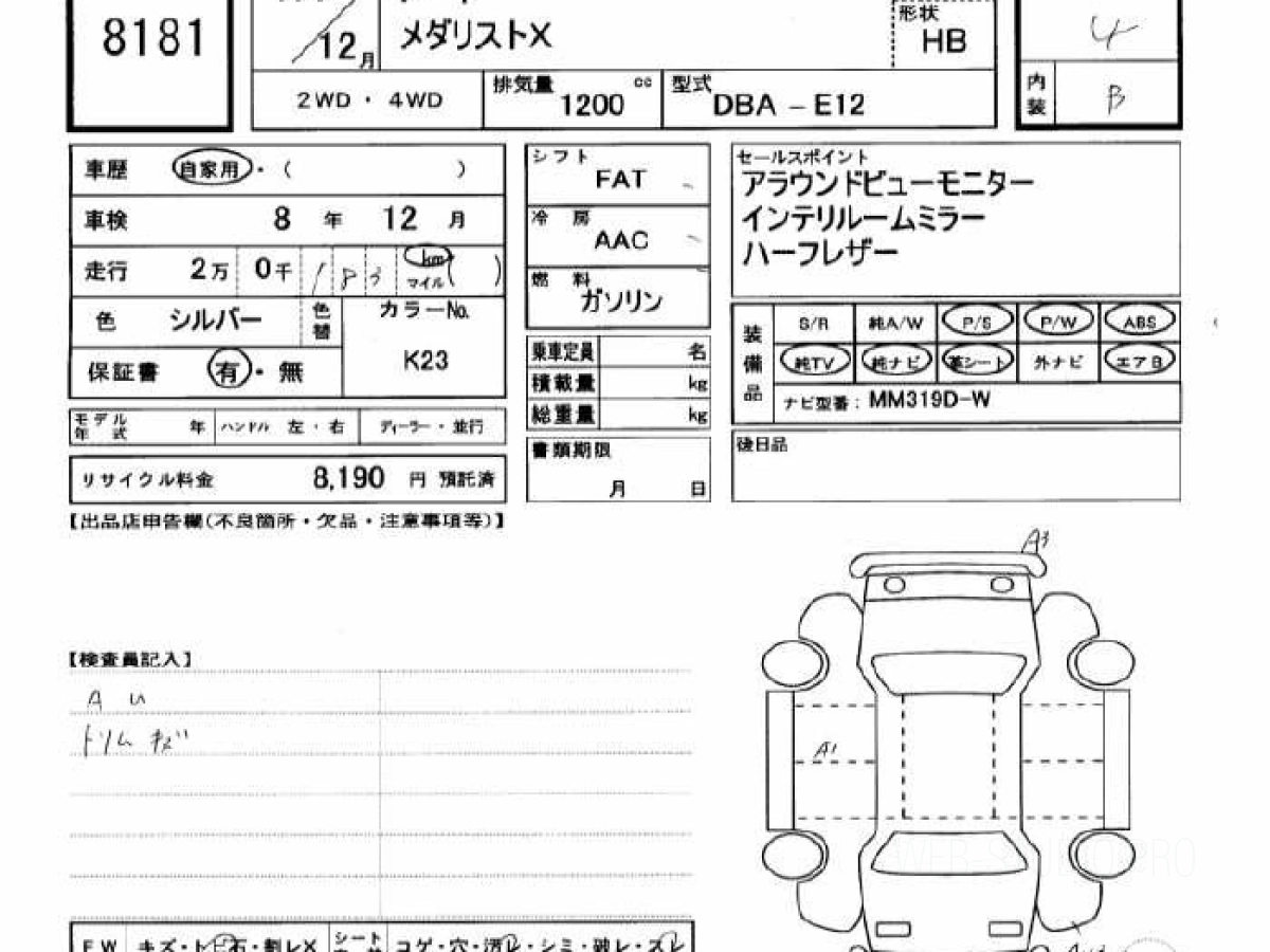 Оценка аукциона: 4, что гарантирует хорошее техническое и косметическое состояние кузова и салона.