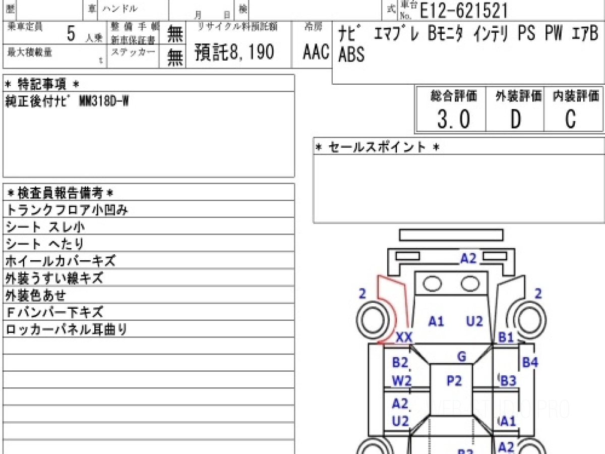 Оценка аукциона: 3, что гарантирует хорошее техническое и косметическое состояние кузова и салона.