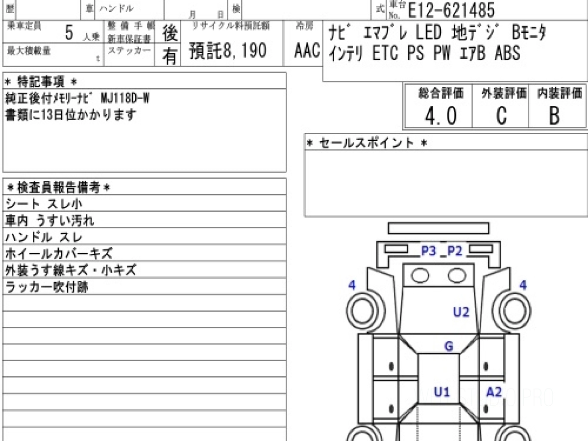 Оценка аукциона: 4, что гарантирует хорошее техническое и косметическое состояние кузова и салона.