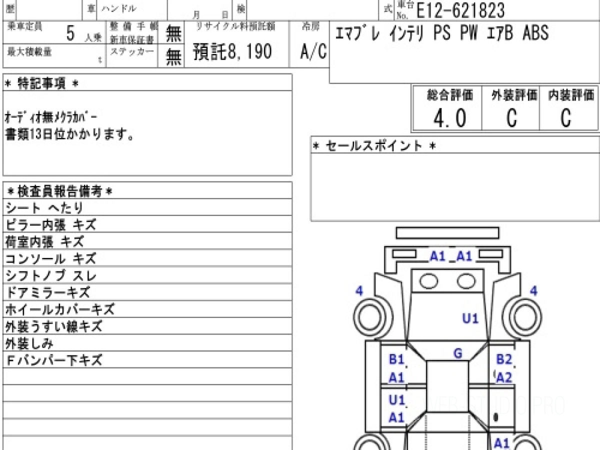 Оценка аукциона: 4, что гарантирует хорошее техническое и косметическое состояние кузова и салона.