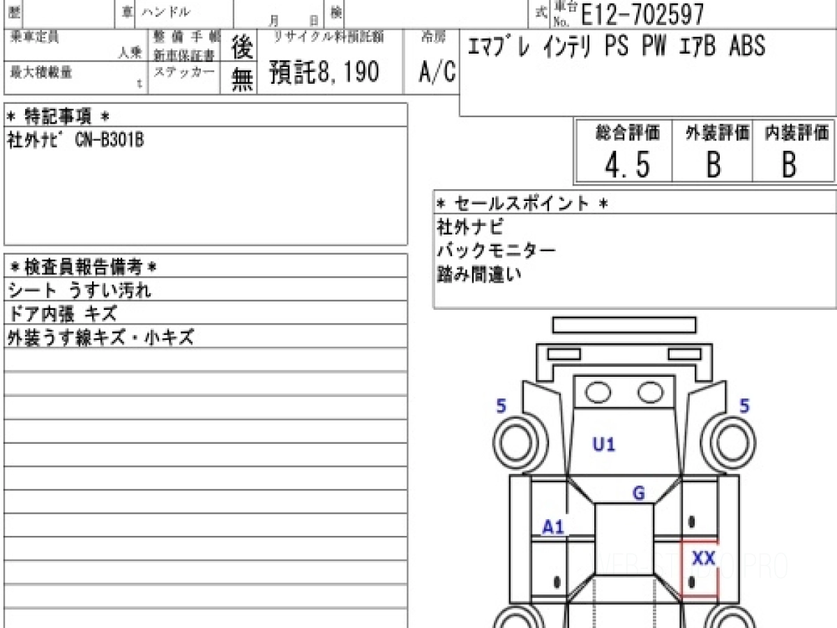 Оценка аукциона: 4.5, что гарантирует хорошее техническое и косметическое состояние кузова и салона.