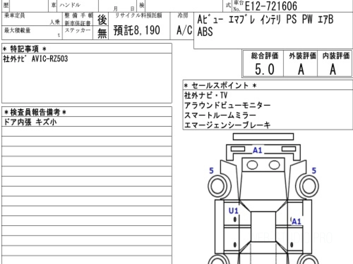 Оценка аукциона: 5, что гарантирует хорошее техническое и косметическое состояние кузова и салона.