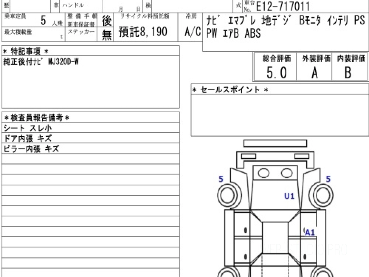 Оценка аукциона: 5, что гарантирует хорошее техническое и косметическое состояние кузова и салона.
