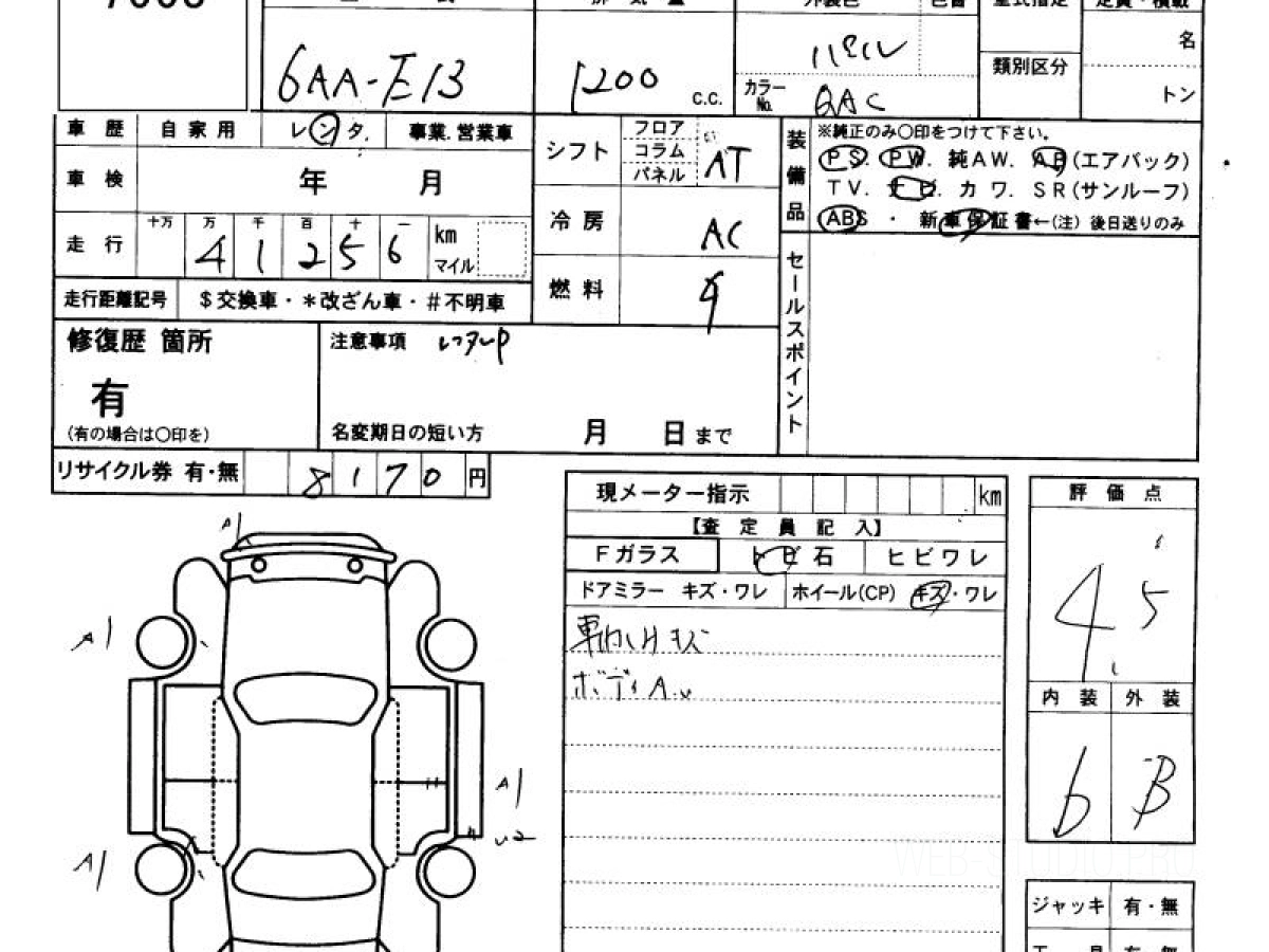 Оценка аукциона: 4.5, что гарантирует хорошее техническое и косметическое состояние кузова и салона.