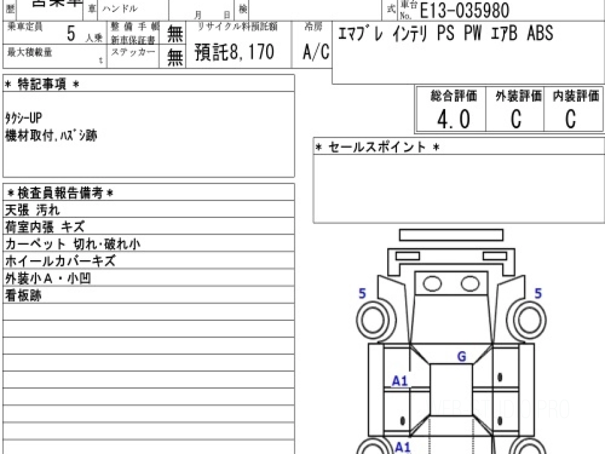 Оценка аукциона: 4, что гарантирует хорошее техническое и косметическое состояние кузова и салона.