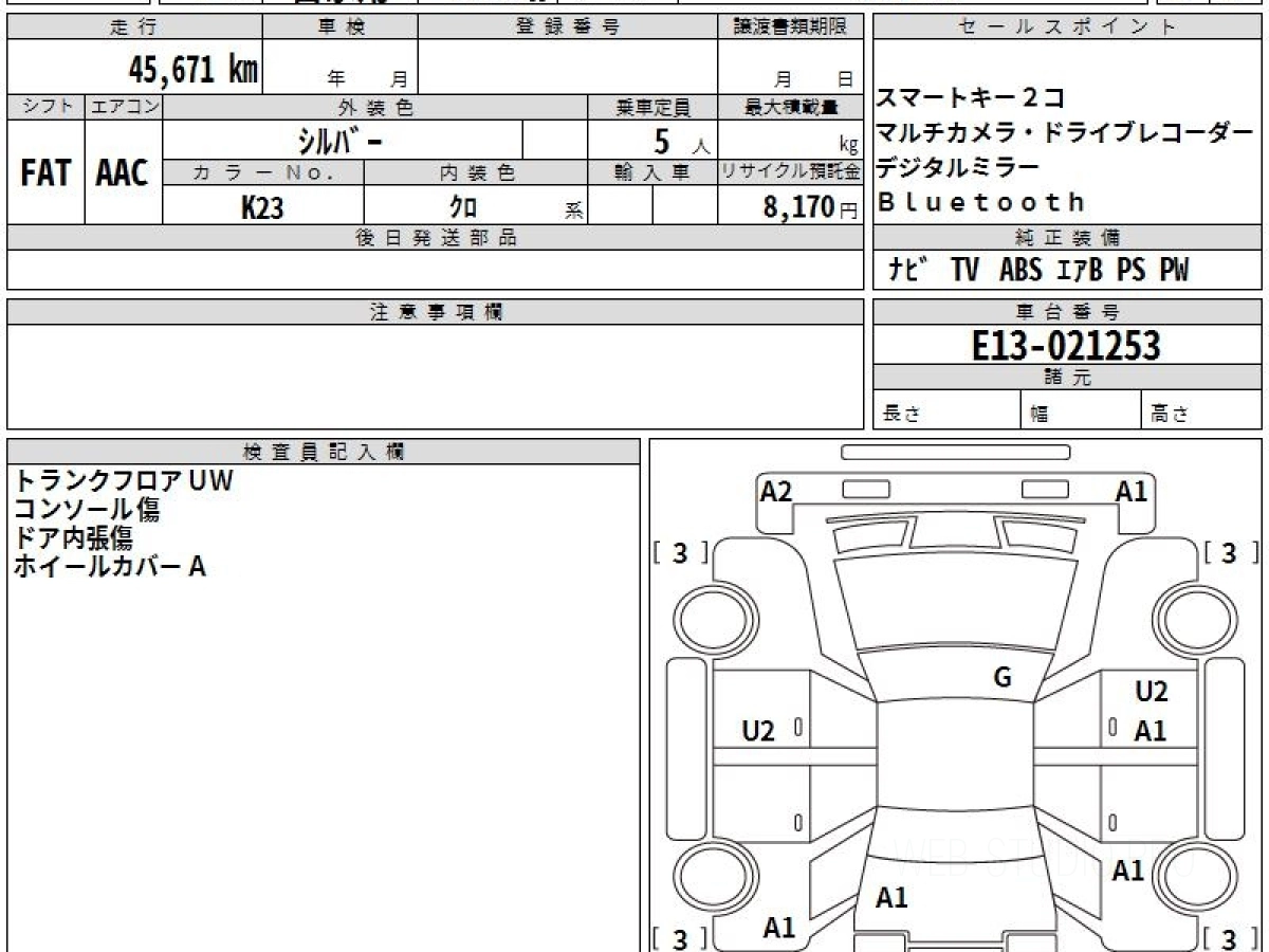 Оценка аукциона: R, что гарантирует хорошее техническое и косметическое состояние кузова и салона.