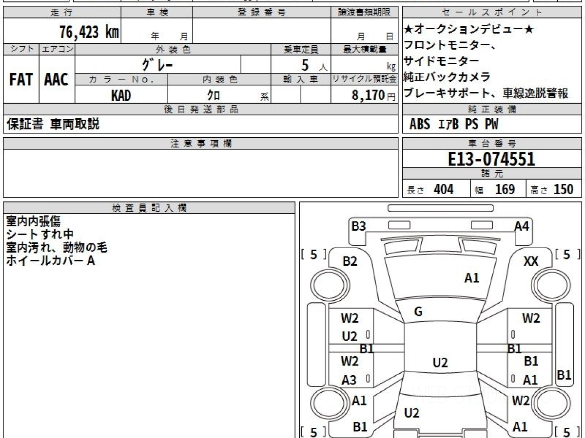 Оценка аукциона: 3.5, что гарантирует хорошее техническое и косметическое состояние кузова и салона.
