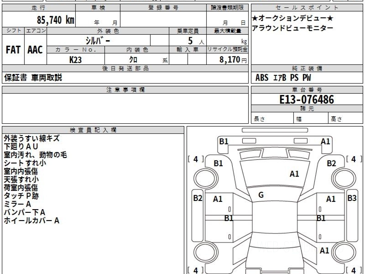 Оценка аукциона: 3.5, что гарантирует хорошее техническое и косметическое состояние кузова и салона.