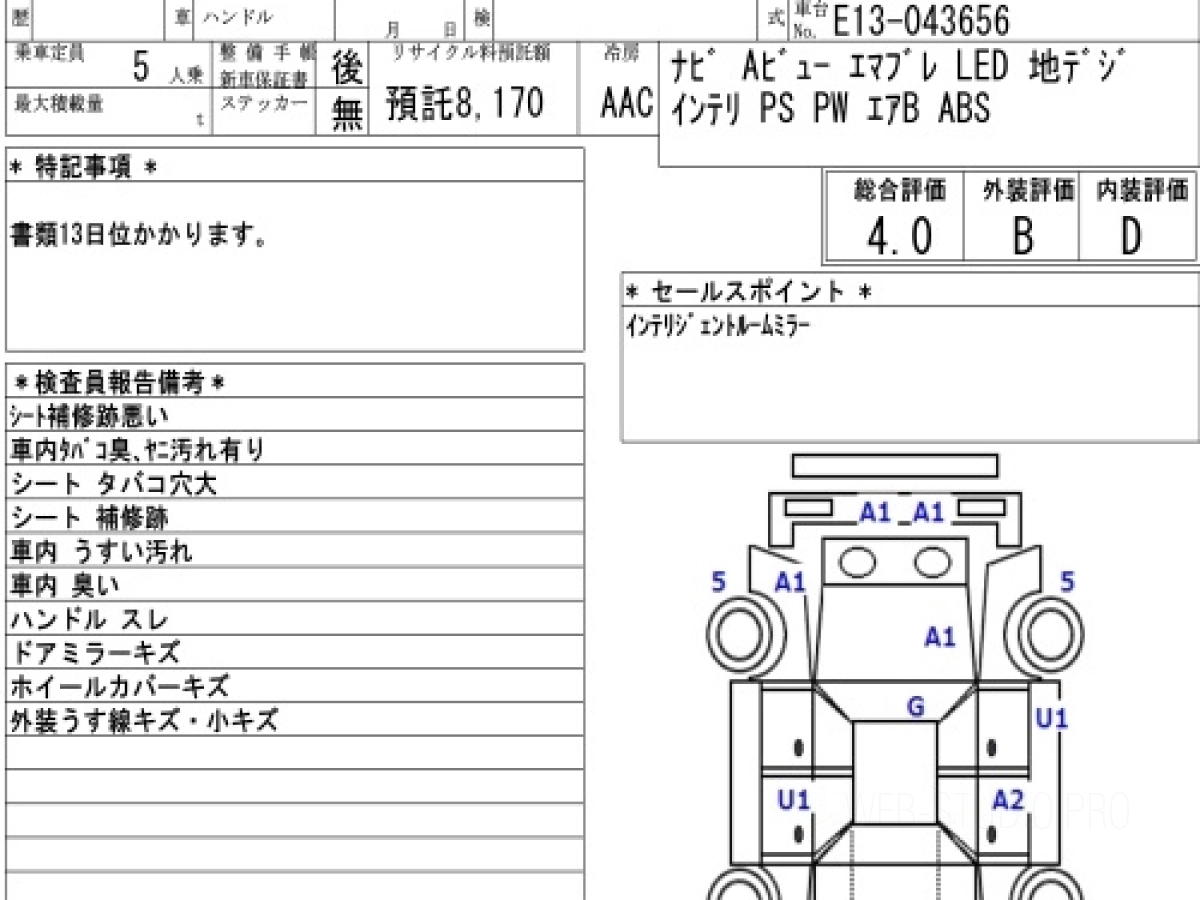 Оценка аукциона: 4, что гарантирует хорошее техническое и косметическое состояние кузова и салона.