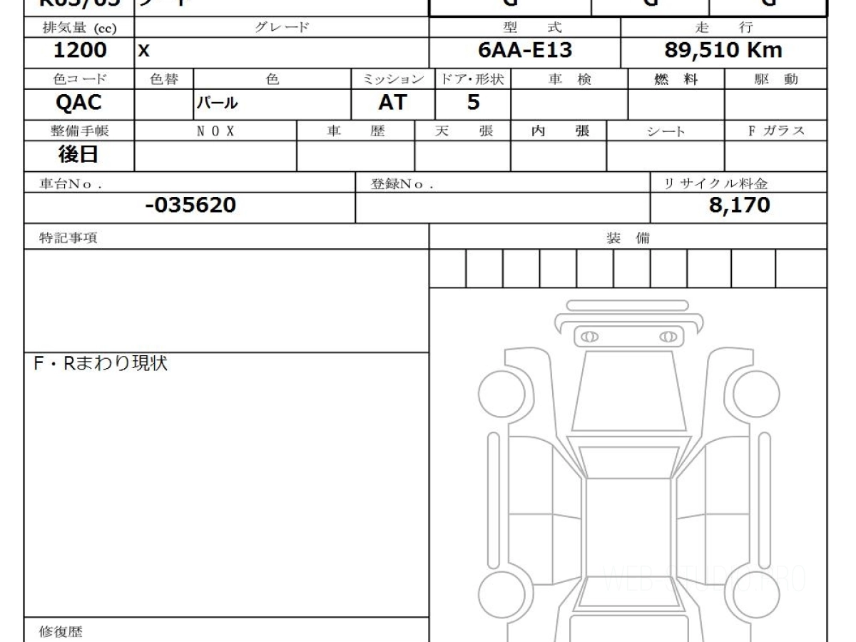 Оценка аукциона: G, что гарантирует хорошее техническое и косметическое состояние кузова и салона.