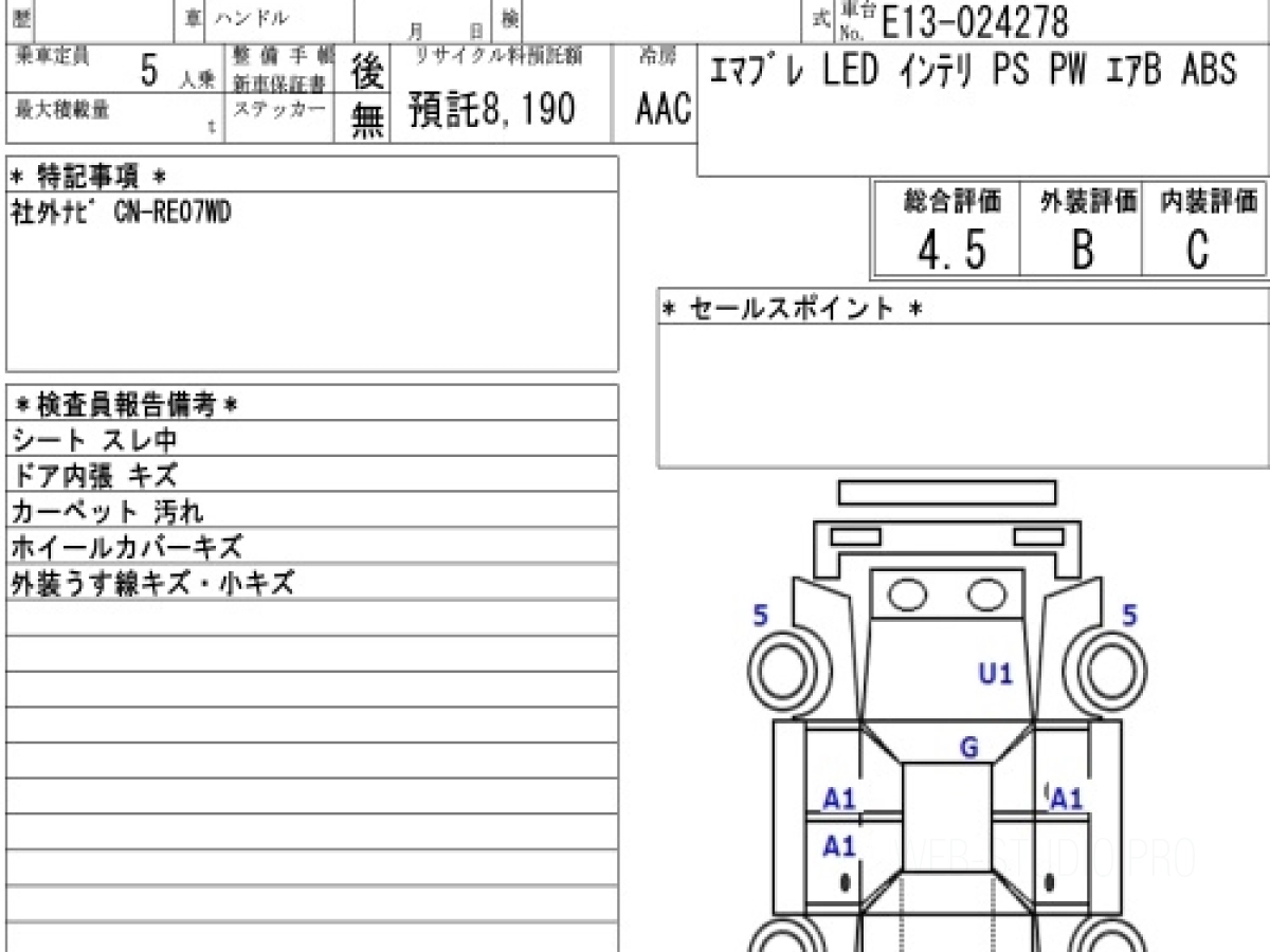 Оценка аукциона: 4.5, что гарантирует хорошее техническое и косметическое состояние кузова и салона.
