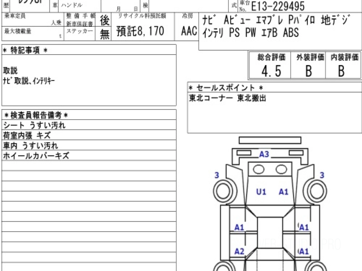 Оценка аукциона: 4.5, что гарантирует хорошее техническое и косметическое состояние кузова и салона.