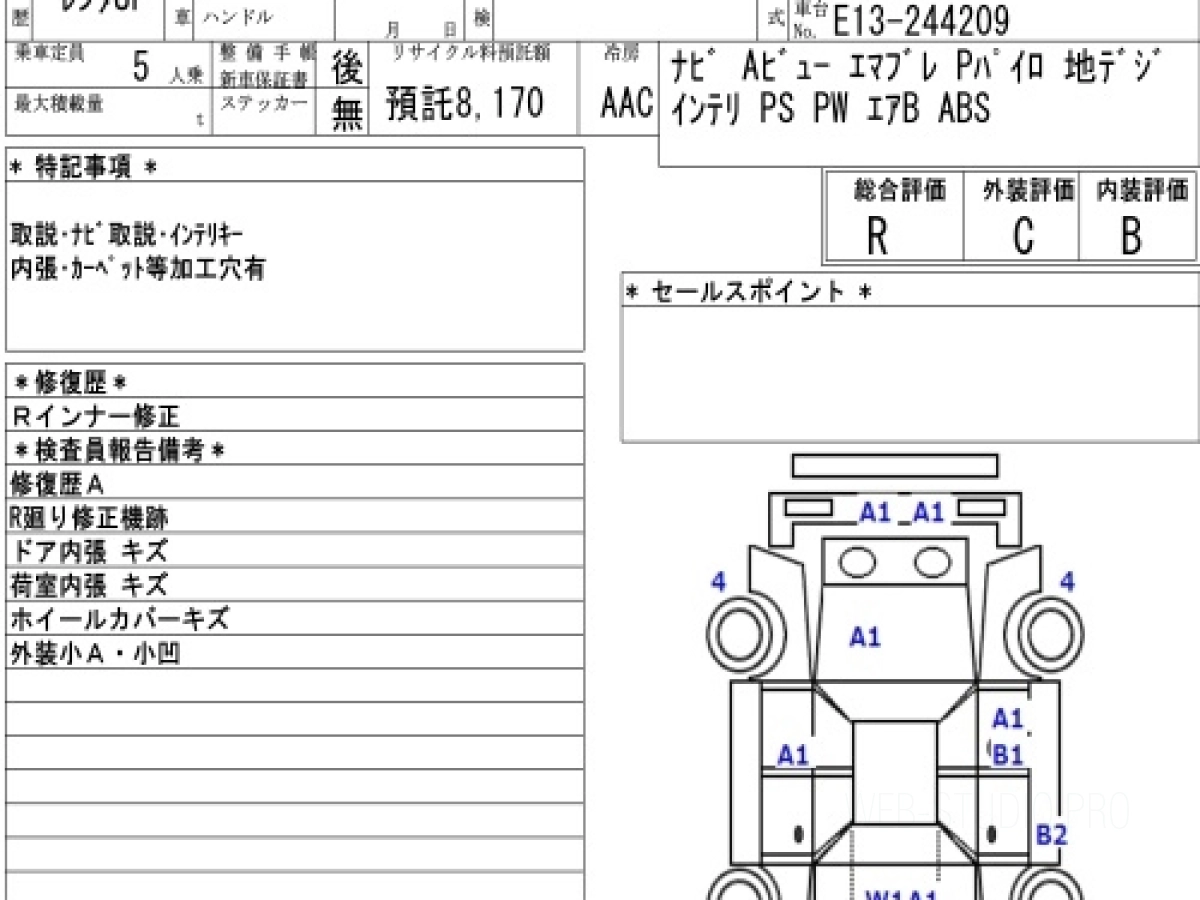 Оценка аукциона: R, что гарантирует хорошее техническое и косметическое состояние кузова и салона.