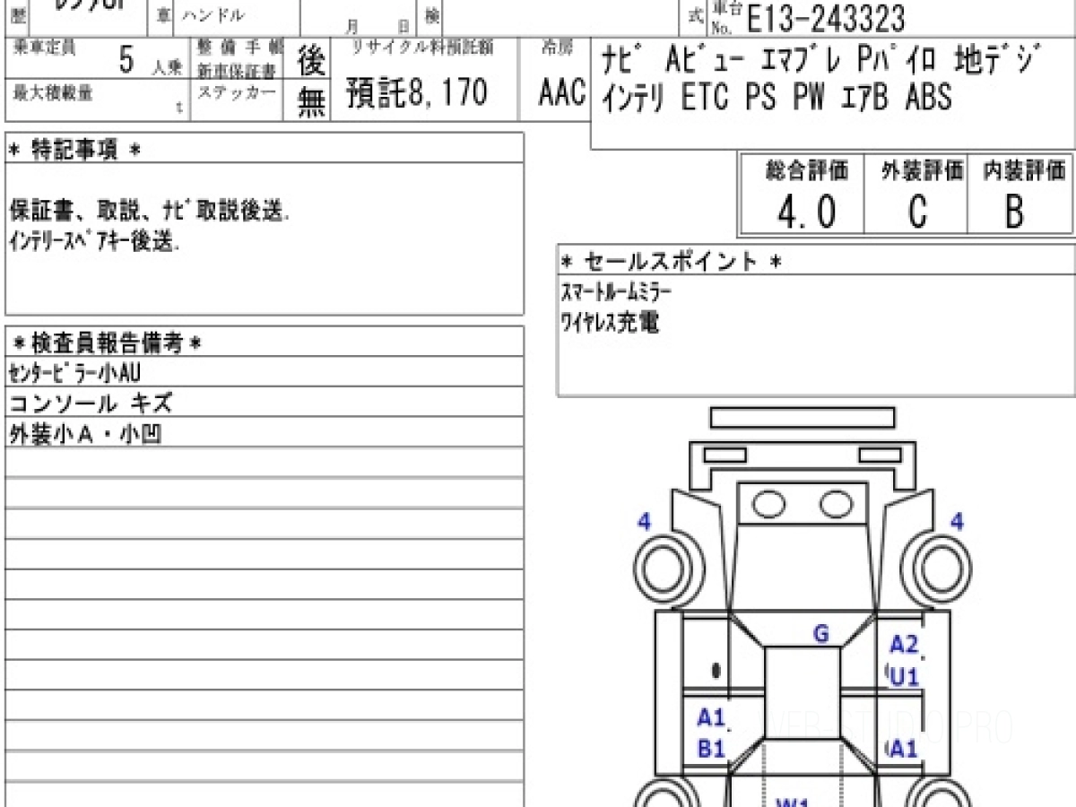 Оценка аукциона: 4, что гарантирует хорошее техническое и косметическое состояние кузова и салона.