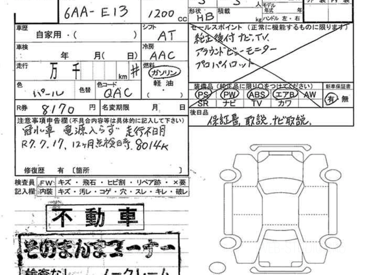 Оценка аукциона: , что гарантирует хорошее техническое и косметическое состояние кузова и салона.