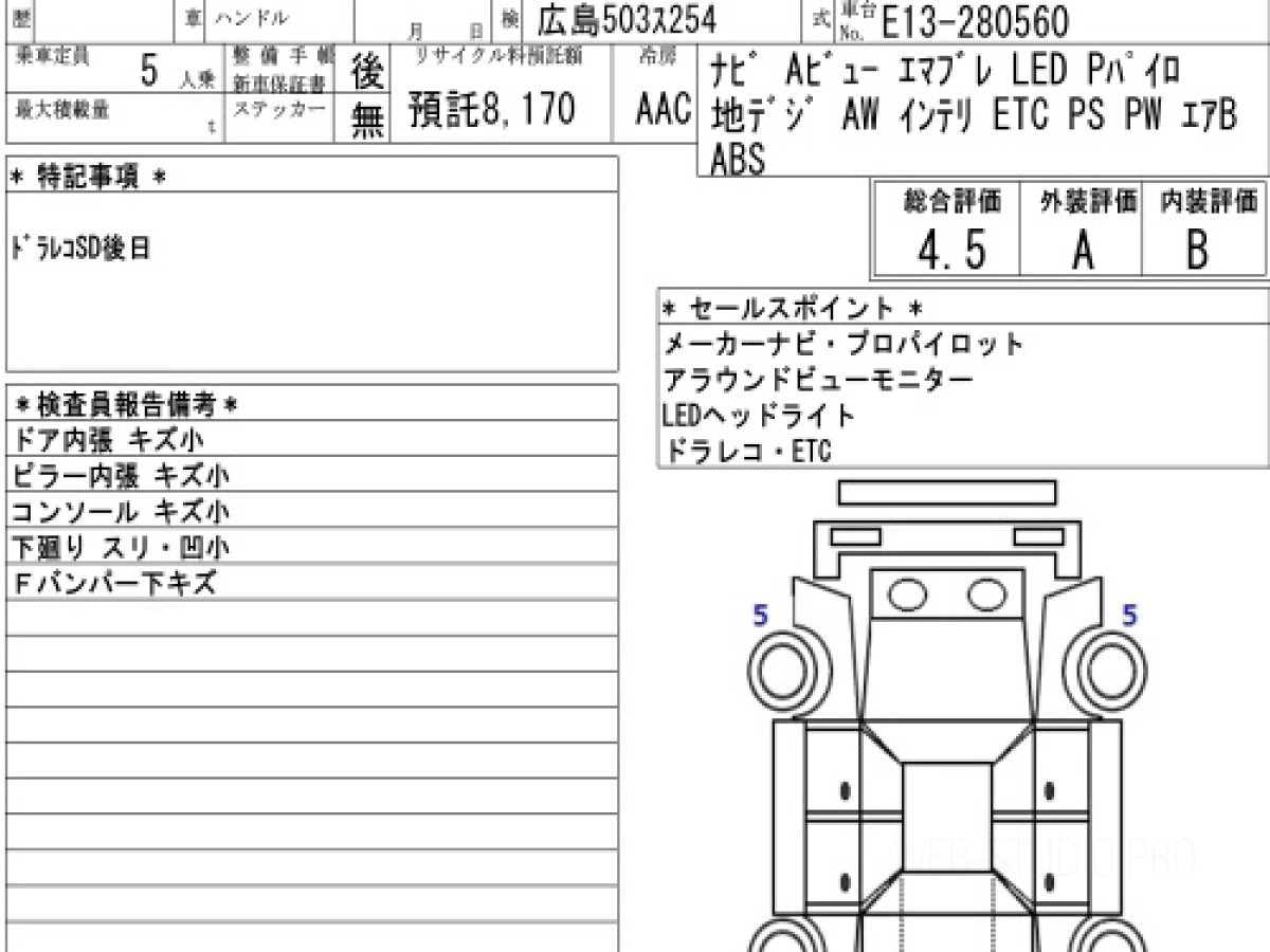 Оценка аукциона: 4.5, что гарантирует хорошее техническое и косметическое состояние кузова и салона.