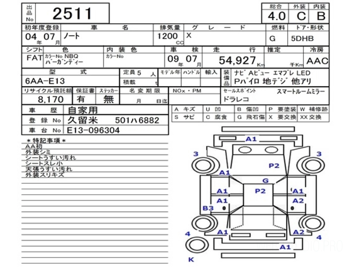 Оценка аукциона: 4, что гарантирует хорошее техническое и косметическое состояние кузова и салона.