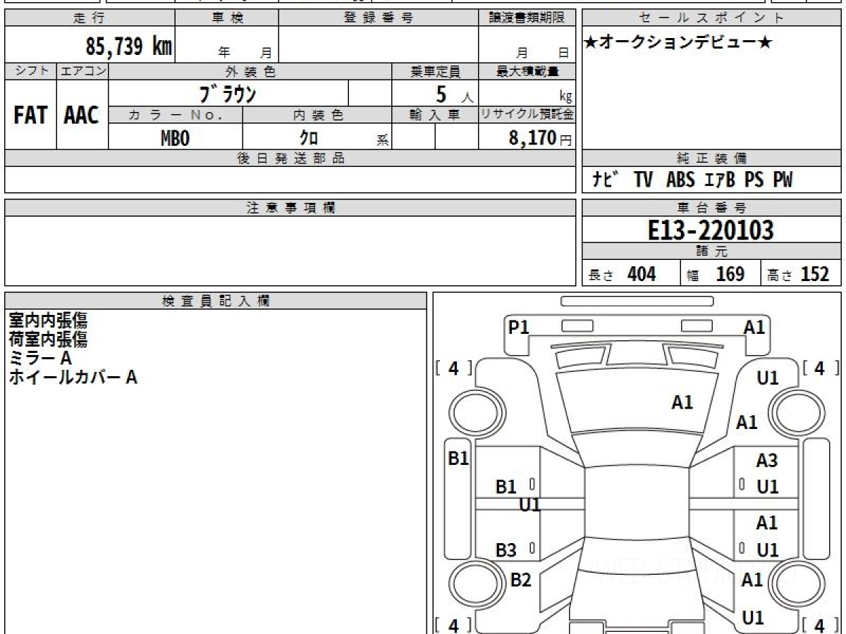 Оценка аукциона: 4, что гарантирует хорошее техническое и косметическое состояние кузова и салона.