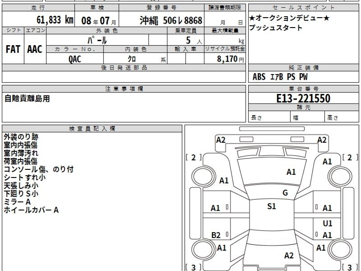 Оценка аукциона: 4, что гарантирует хорошее техническое и косметическое состояние кузова и салона.