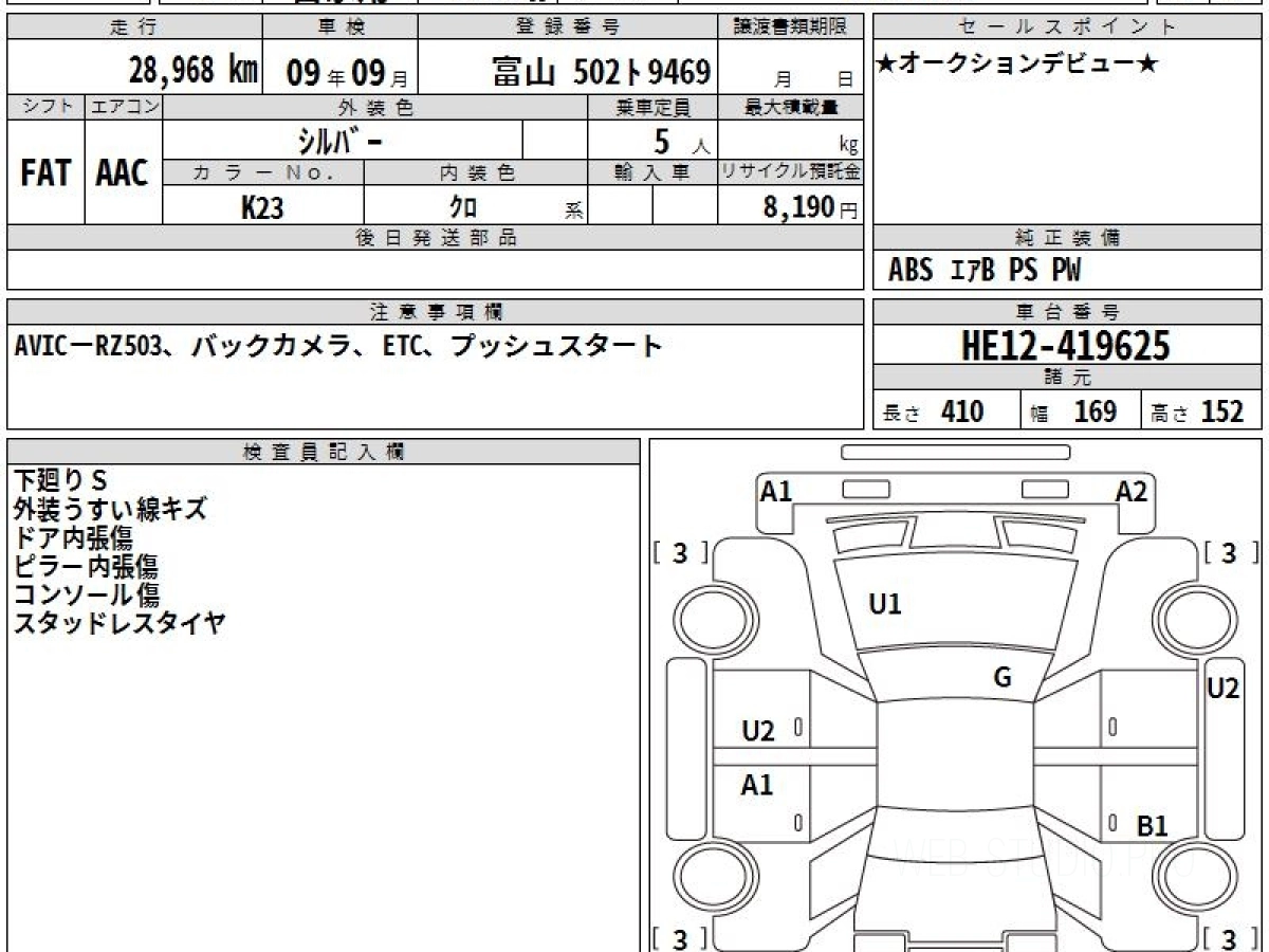 Оценка аукциона: 4, что гарантирует хорошее техническое и косметическое состояние кузова и салона.