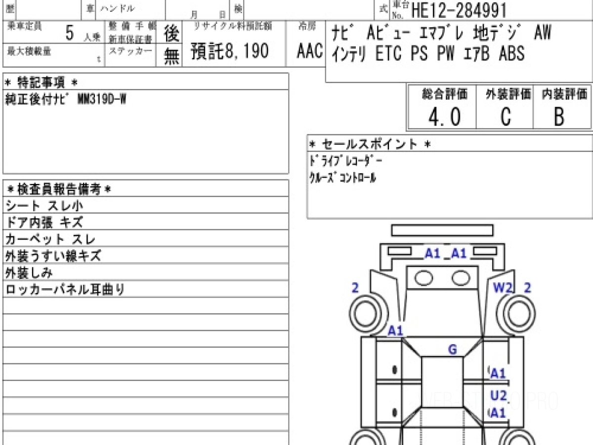 Оценка аукциона: 4, что гарантирует хорошее техническое и косметическое состояние кузова и салона.