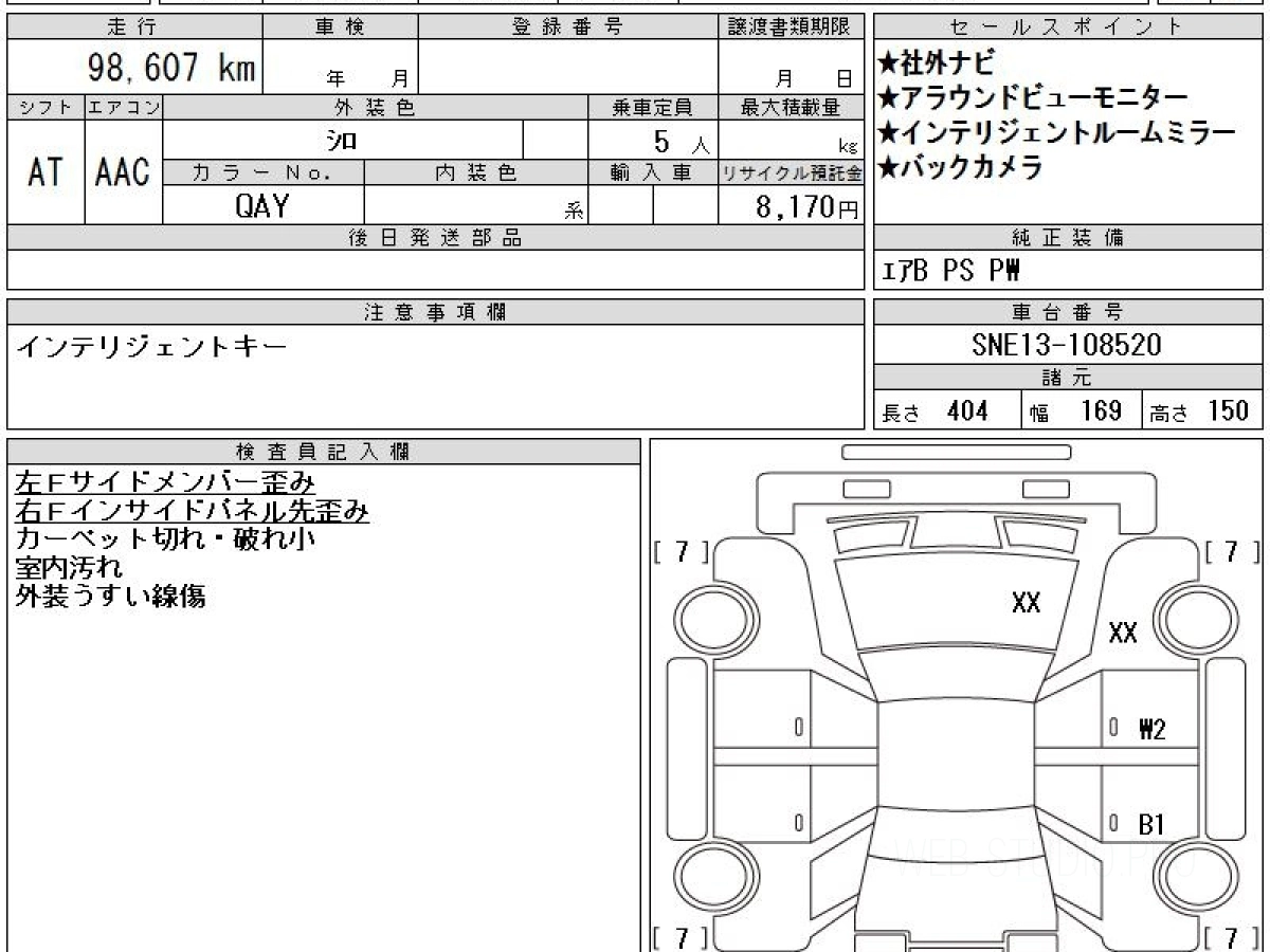 Оценка аукциона: R, что гарантирует хорошее техническое и косметическое состояние кузова и салона.