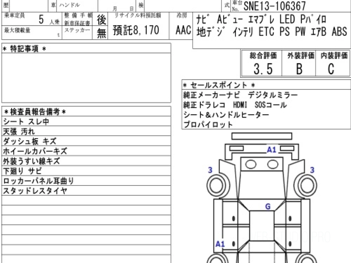 Оценка аукциона: 3.5, что гарантирует хорошее техническое и косметическое состояние кузова и салона.