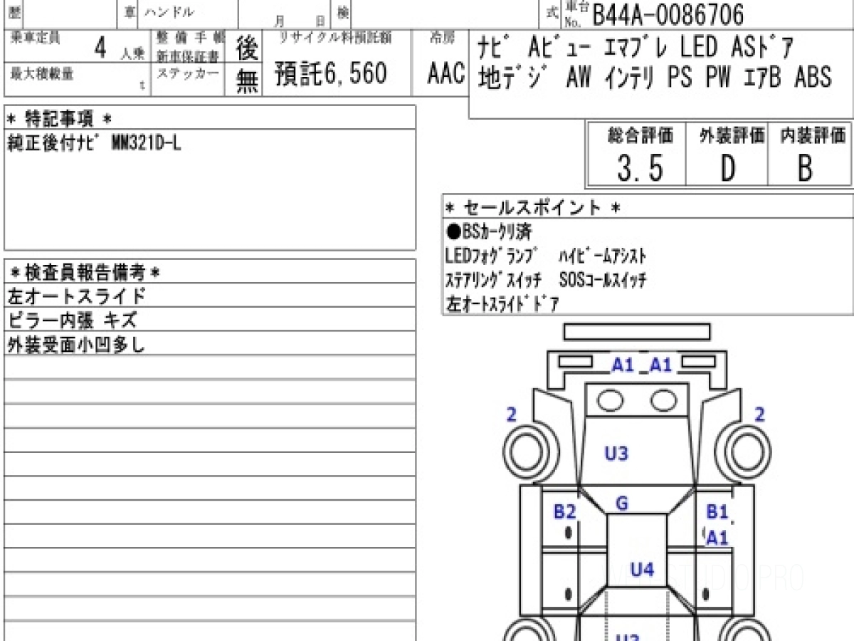Оценка аукциона: 3.5, что гарантирует хорошее техническое и косметическое состояние кузова и салона.