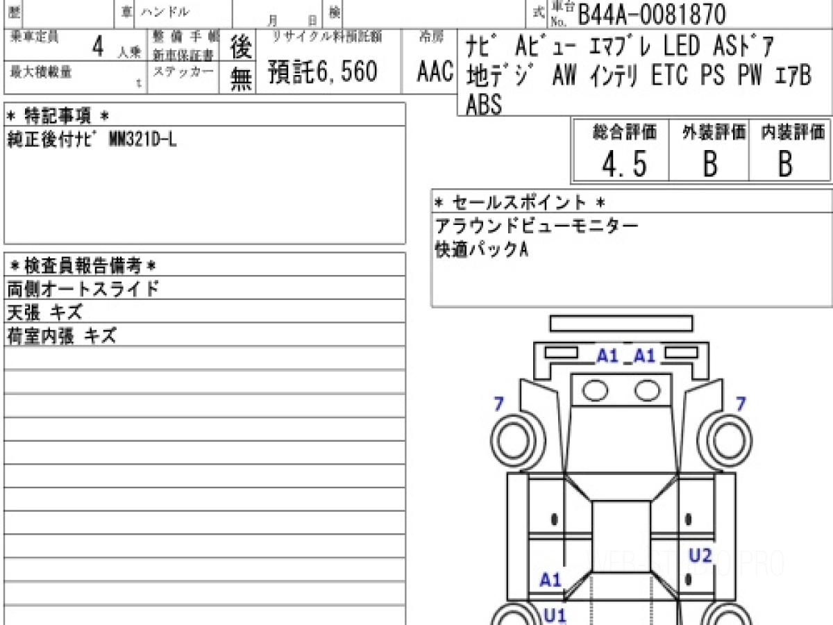 Оценка аукциона: 4.5, что гарантирует хорошее техническое и косметическое состояние кузова и салона.