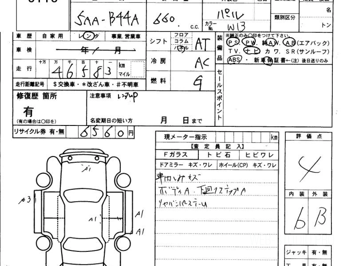 Оценка аукциона: 4, что гарантирует хорошее техническое и косметическое состояние кузова и салона.
