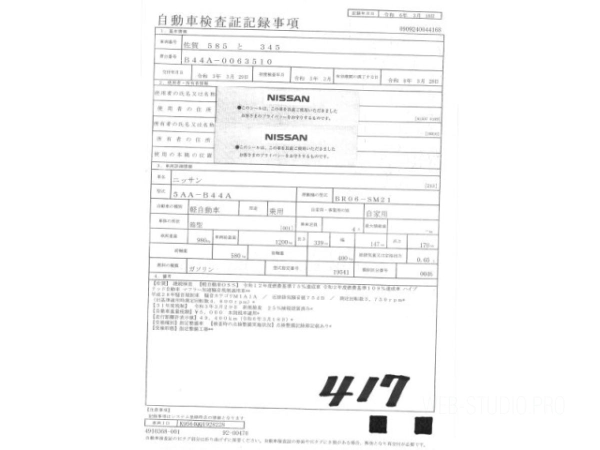 Номер кузова: B44A.