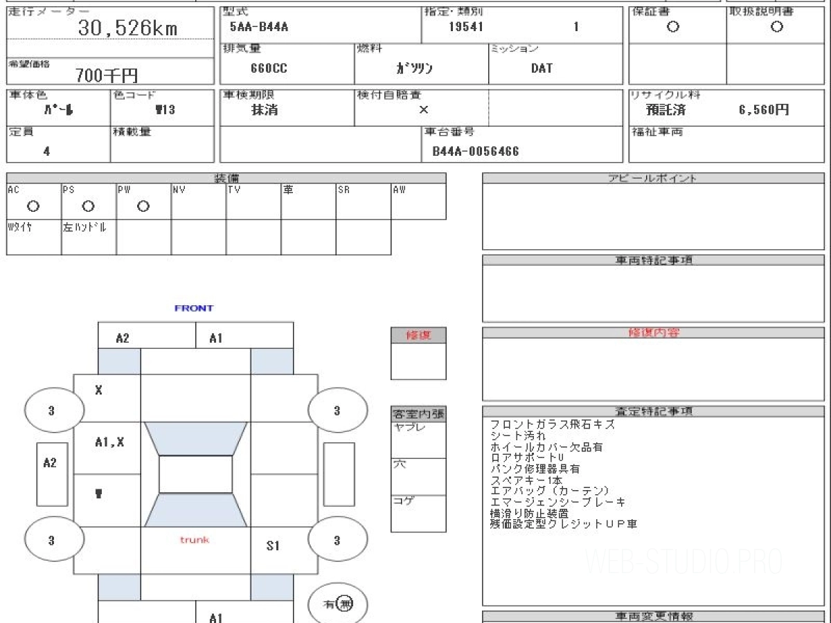 Номер кузова: B44A.