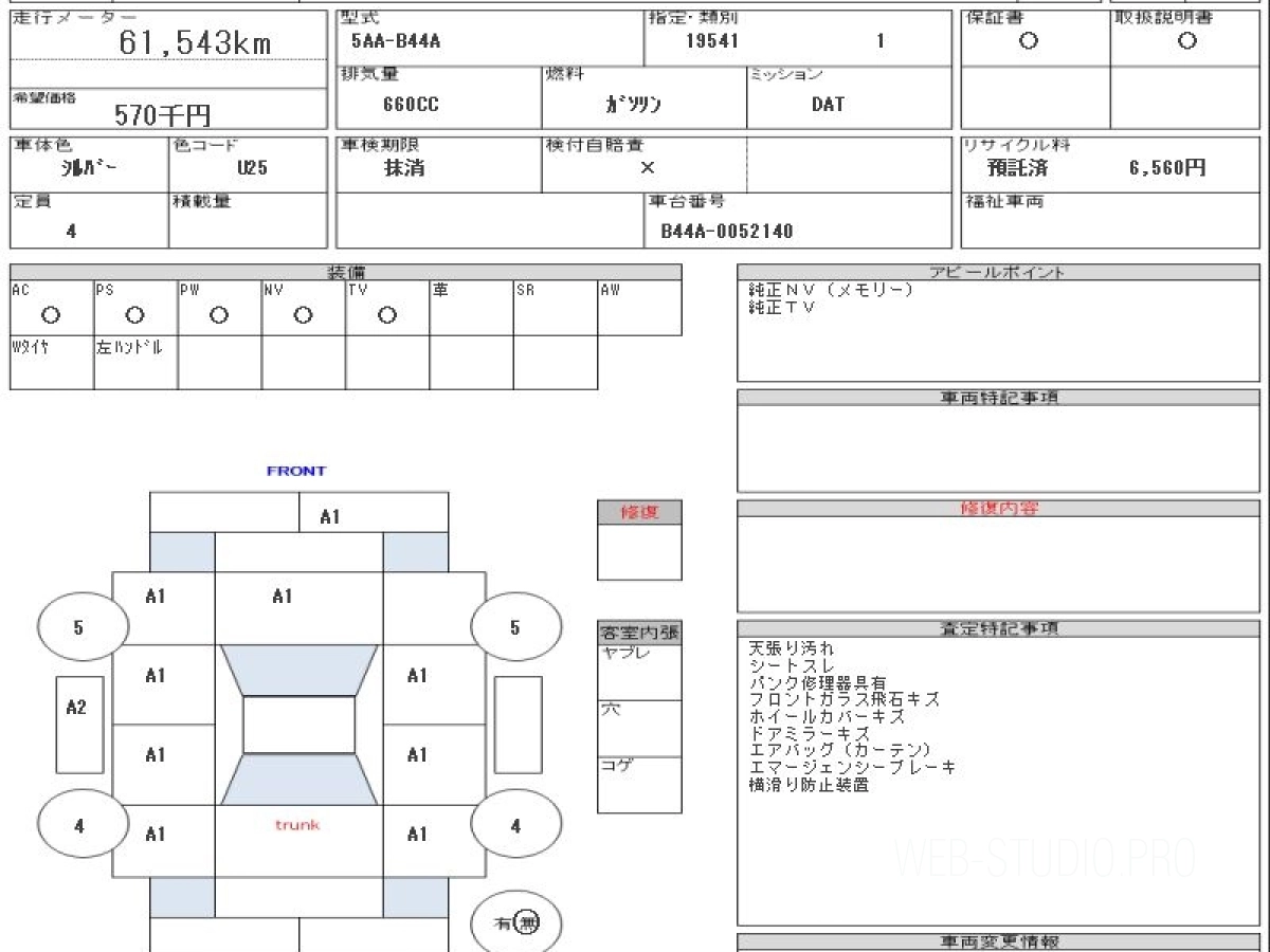 Номер кузова: B44A.