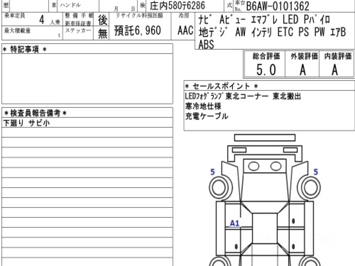 Оценка аукциона: 5, что гарантирует хорошее техническое и косметическое состояние кузова и салона.