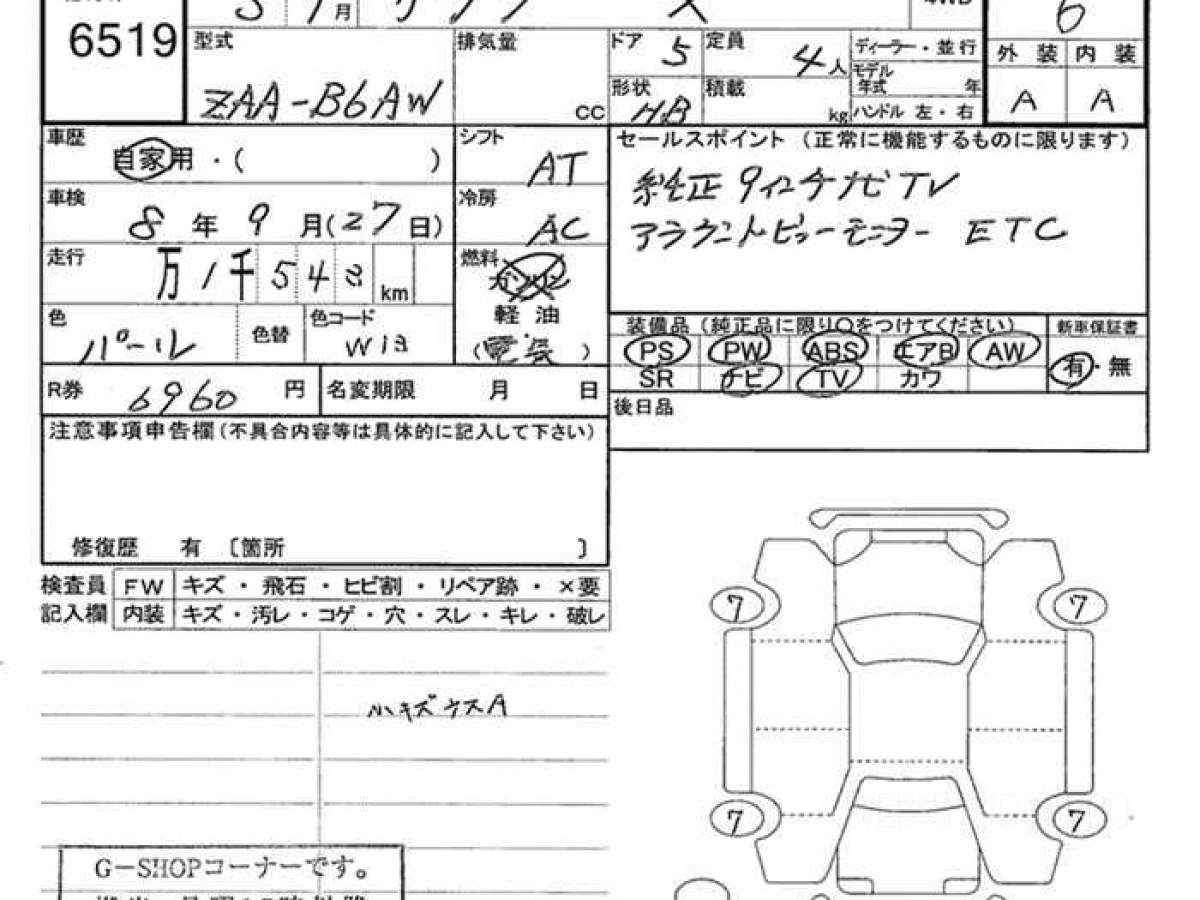 Оценка аукциона: 6, что гарантирует хорошее техническое и косметическое состояние кузова и салона.