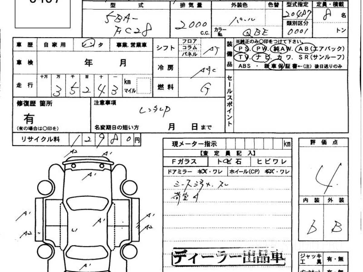 Оценка аукциона: 4, что гарантирует хорошее техническое и косметическое состояние кузова и салона.